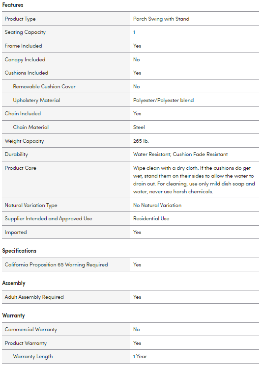 - Cushions Included: Yes